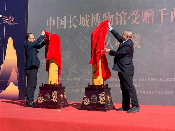 安化縣人民政府向長(zhǎng)城博物館贈(zèng)送由安化縣出品的《萬(wàn)里長(zhǎng)城千兩茶》