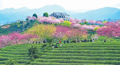 圖為2月17日,游客在福建省龍巖市漳平市永福鎮(zhèn)臺品櫻花茶園景區(qū)賞花觀景。