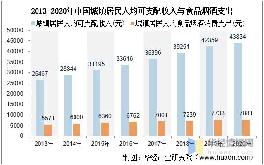 隨著我國經(jīng)濟(jì)持續(xù)向好發(fā)展,城鎮(zhèn)居民人均收入與消費(fèi)水平持續(xù)提升。2013-2020年中國城鎮(zhèn)居民人均可支配收入由26467元增長至43834元,食品煙酒消費(fèi)支出由5571元增長至7881元。快速增長的消費(fèi)能力帶來多元化、品質(zhì)化的消費(fèi)升級需求,利好整體大消費(fèi)行業(yè),成為支撐新茶飲行業(yè)消費(fèi)的基本盤。